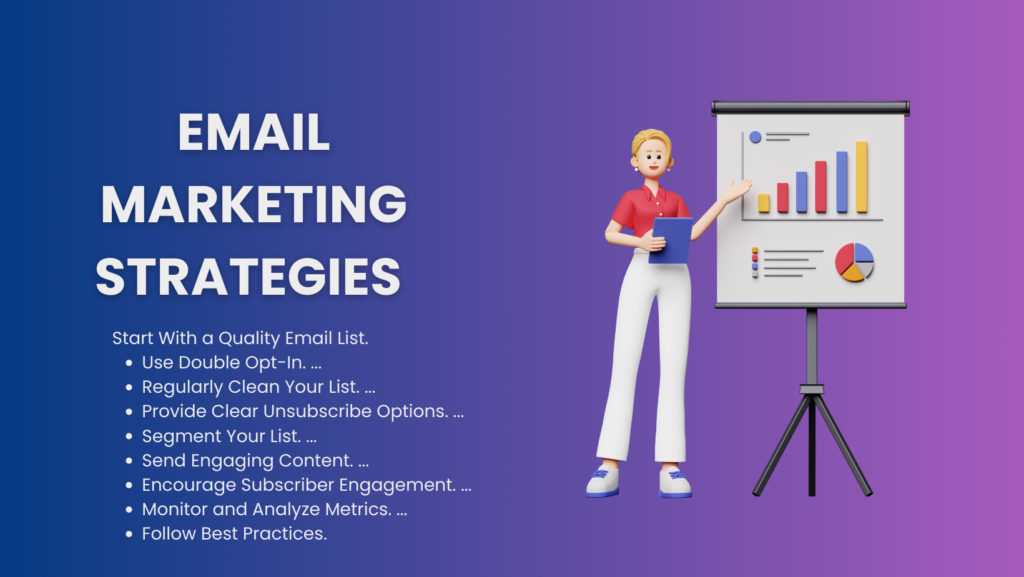So, how do you build a list of engaged people? One of the best ways is to offer something valuable in exchange for their email, like a free guide, discount, or access to exclusive content. Email Marketing Strategies . This gives people a reason to give you their email and ensures they’re interested in what you offer. And remember, keep your list clean by removing inactive emails regularly so that you’re only sending to people who actually want to hear from you.